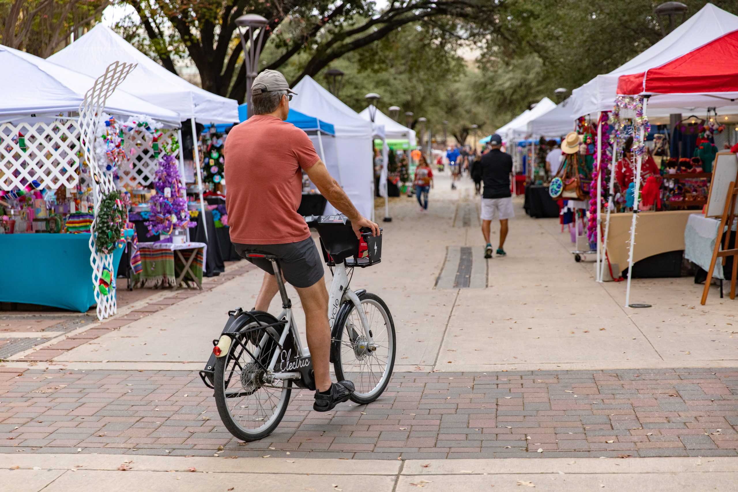 Though bicycles, e-bikes, scooters, and skateboards are not permitted on sidewalks inside the parks, alternative modes of transportation are encouraged to, from, and through Hemisfair’s complete streets.